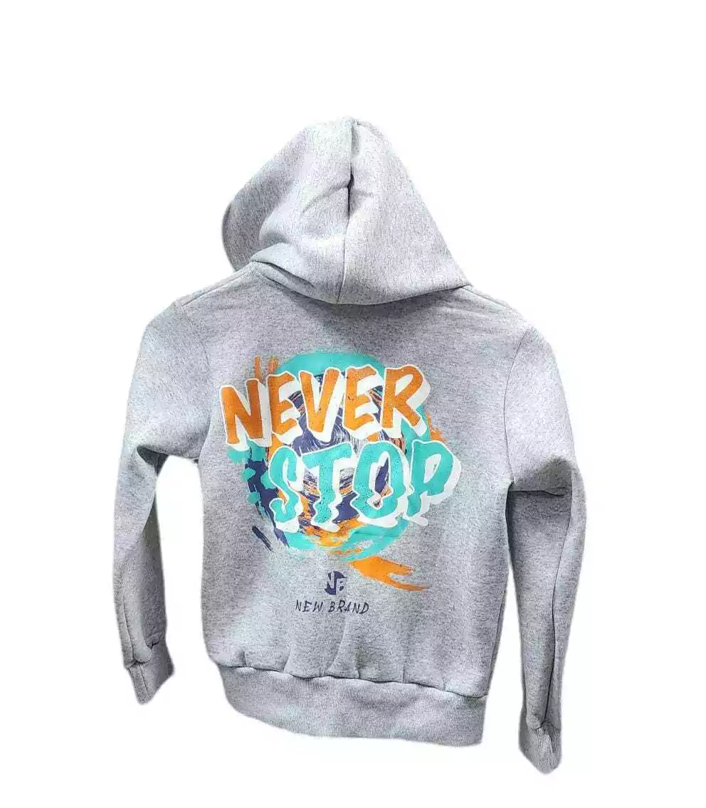 Confeccionado en tela frizada de alta calidad, su textura suave y acogedora mantiene el calor en los días frescos. Este modelo presenta un práctico bolsillo canguro que aporta confort y funcionalidad, perfecto para que los chicos puedan guardar sus manos o pequeños objetos.
